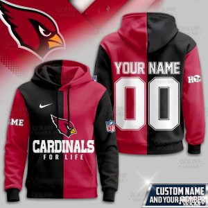 Ignite your passion and wear your devotion with the Arizona Cardinals Special Edition New Hoodie, a powerful emblem of your unwavering support for the Red Birds. This striking split-design garment masterfully blends the iconic Cardinals red with a deep, contrasting black, creating a visually dynamic tribute. The front proudly showcases the bold swoosh, the revered Cardinals bird head logo, and the resolute “CARDINALS FOR LIFE” text, while an authentic NFL shield adorns one sleeve, complementing a dedicated space for personalization on the other. The back offers a truly personalized fan experience, featuring “YOUR NAME” and “00” in prominent white lettering, allowing you to represent your unique connection to the team. Crafted from a comfortable, durable polyester blend, this medium-weight hoodie provides a soft brushed interior for ultimate warmth and comfort, designed for a relaxed, standard fit and available in a full range of sizes.