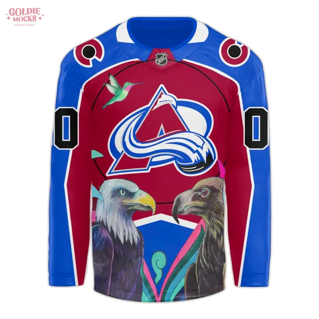 Feel the pulse of your heritage and the roar of the crowd with the Colorado Avalanche 2025 Heritage Hispanic Jersey, a profound symbol of cultural pride and unwavering team spirit. This meticulously designed collectible immediately strikes with its vibrant red and blue color scheme, reflecting the Avalanche’s iconic palette while embracing rich cultural artistry. The front proudly displays the classic Avalanche ‘A’ logo, framed by a soaring hummingbird, symbolizing joy and agility, and two majestic eagles, representing strength and freedom, rendered in a dynamic, illustrative style. Intricate abstract patterns in green, purple, and yellow accents weave through the design, adding depth and cultural flair. The back continues this breathtaking narrative, featuring customizable ‘YOUR NAME’ and ’00’ elements above a stunning, large purple butterfly, often a symbol of transformation and beauty in Hispanic cultures, set against complementary flowing artistic motifs. Crafted from premium quality 100% polyester performance fabric, this lightweight and breathable jersey is engineered for comfort, available in a full range of adult sizes for the perfect fit.